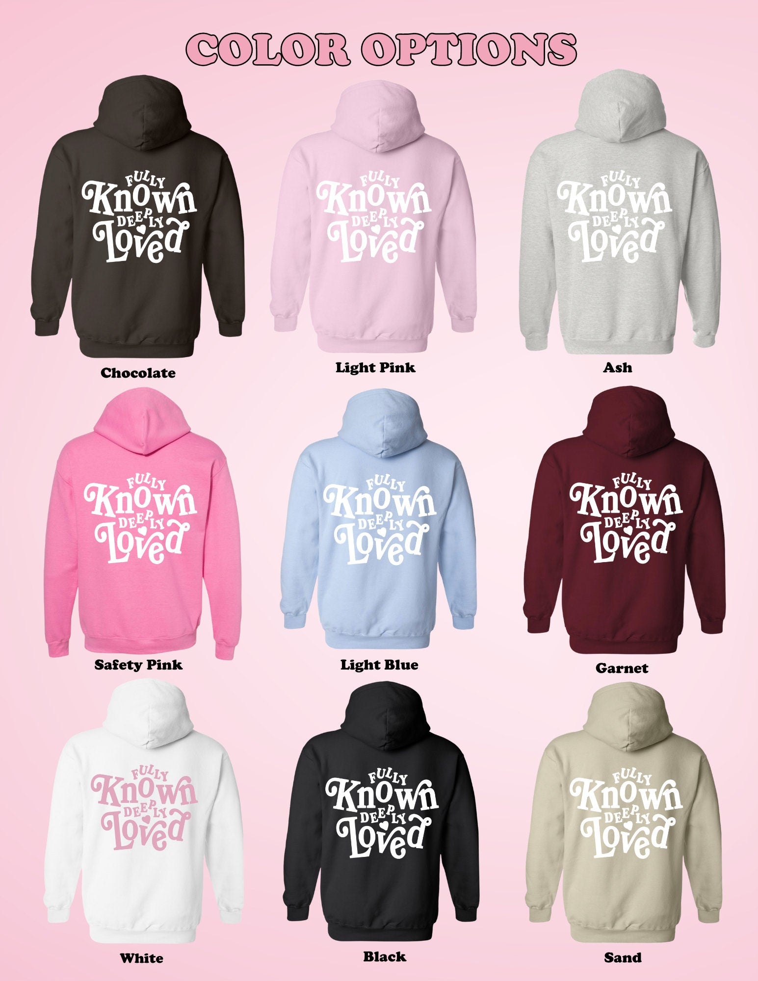 This trendy Christian hoodie is the perfect blend of cozy and meaningful. wear it as a daily reminder that you are fully known and deeply loved, or gift it to someone who needs encouragement and the comfort of God’s love. ♡