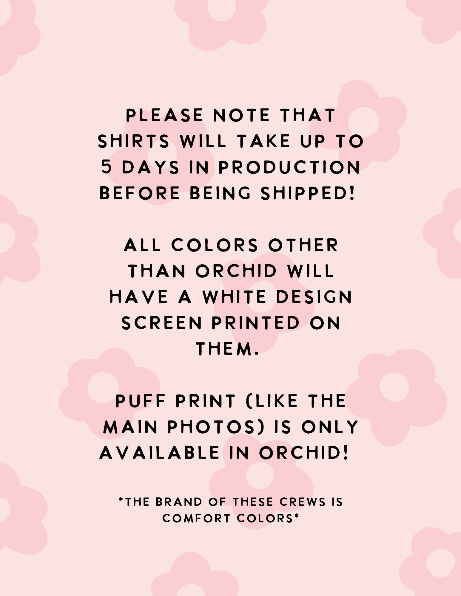NOTE*** these sweatshirts are made to order. Please allow up to 5 days in production before your order is shipped :)
