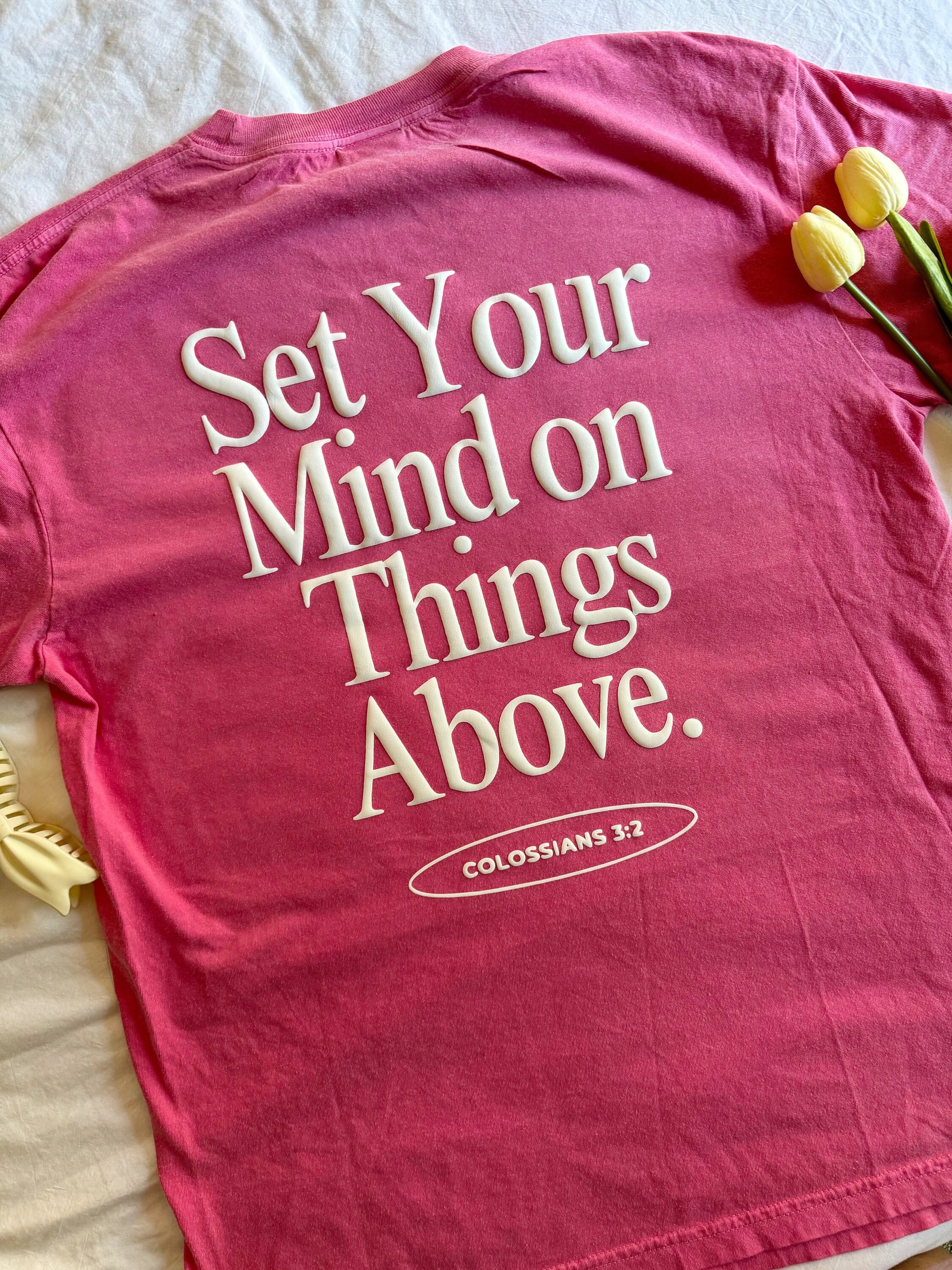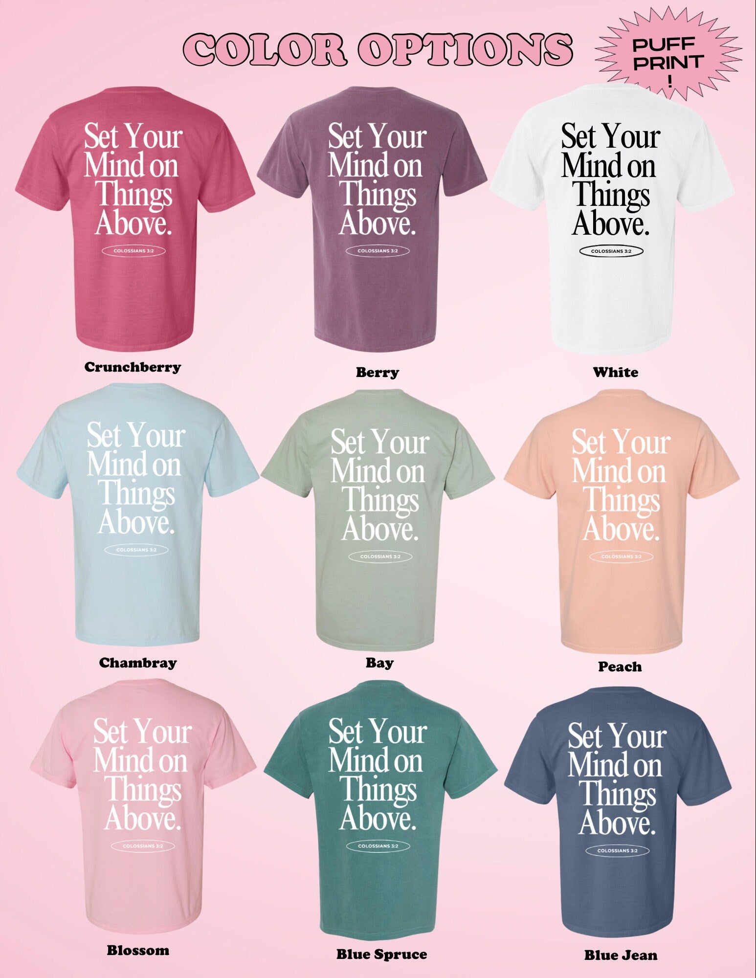 Set Your Mind on Things Above T-Shirt | Christian Comfort Colors Tee | Puff Print Faith Shirt | Bible Verse Tee Aesthetic Christian Apparel