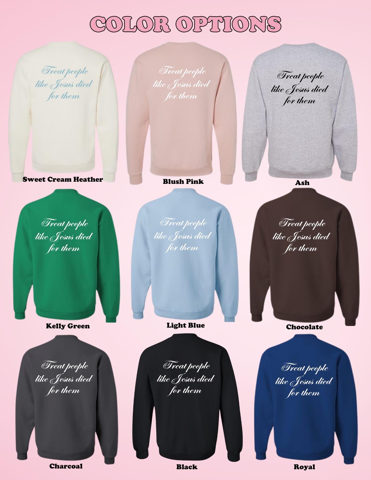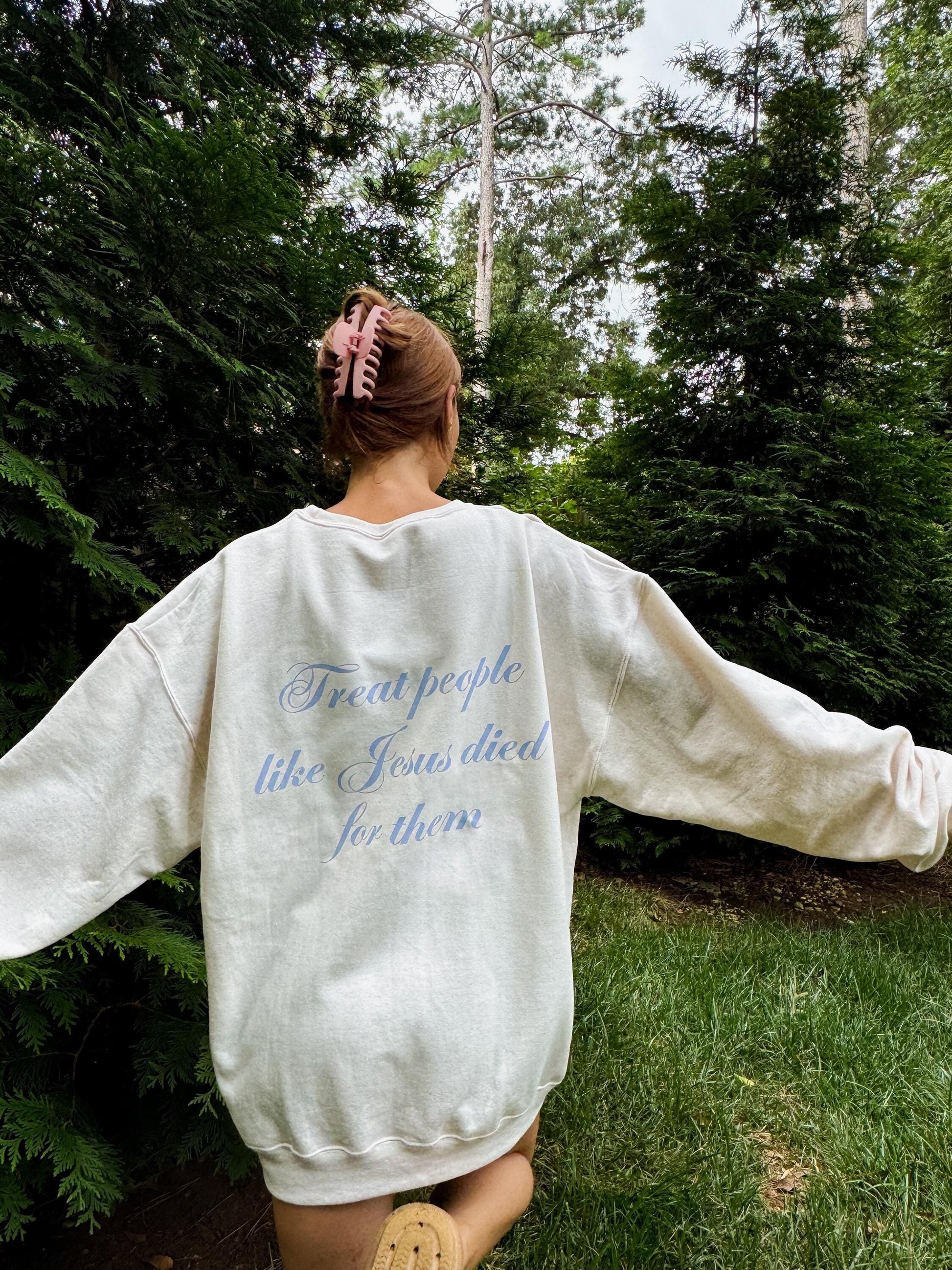 Treat People Like Jesus Died for Them Crewneck Christian Sweatshirt | Bible Verse Pullover Trendy Faith Apparel Aesthetic Christian Clothing